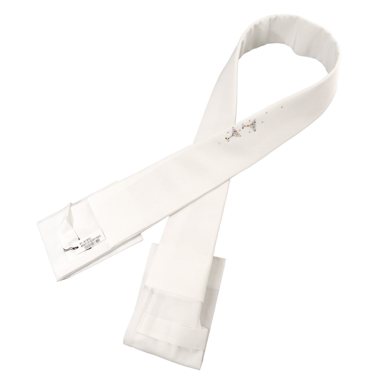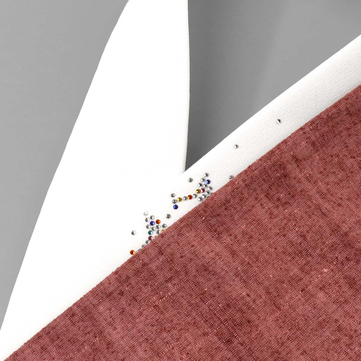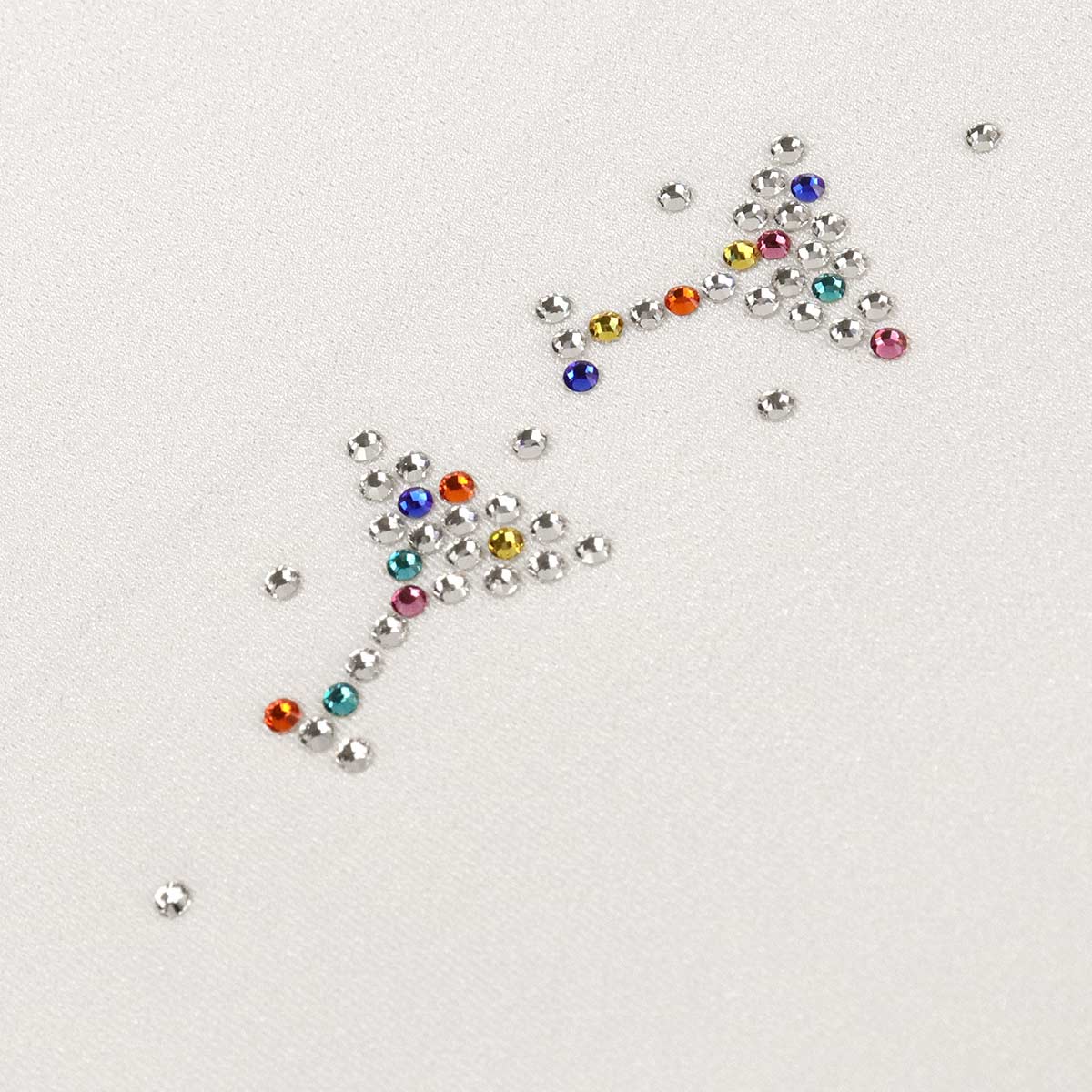 白地の半衿にクリアとレインボーカラーのラインストーンを置きました。