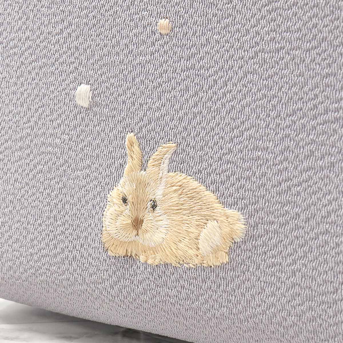 裏と表には表情が違ううさぎの刺繍。