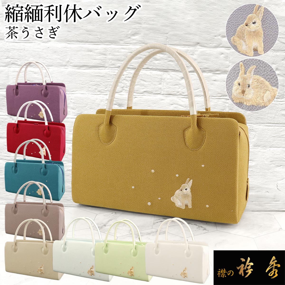 縮緬地のうさぎ利休バッグのご紹介です。