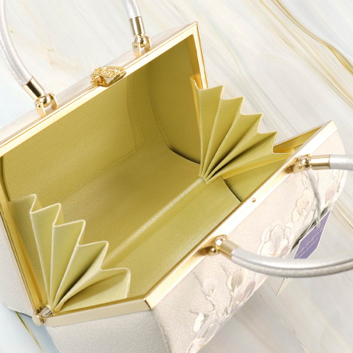 高級感のある口金にはラインストーンが配置されております。