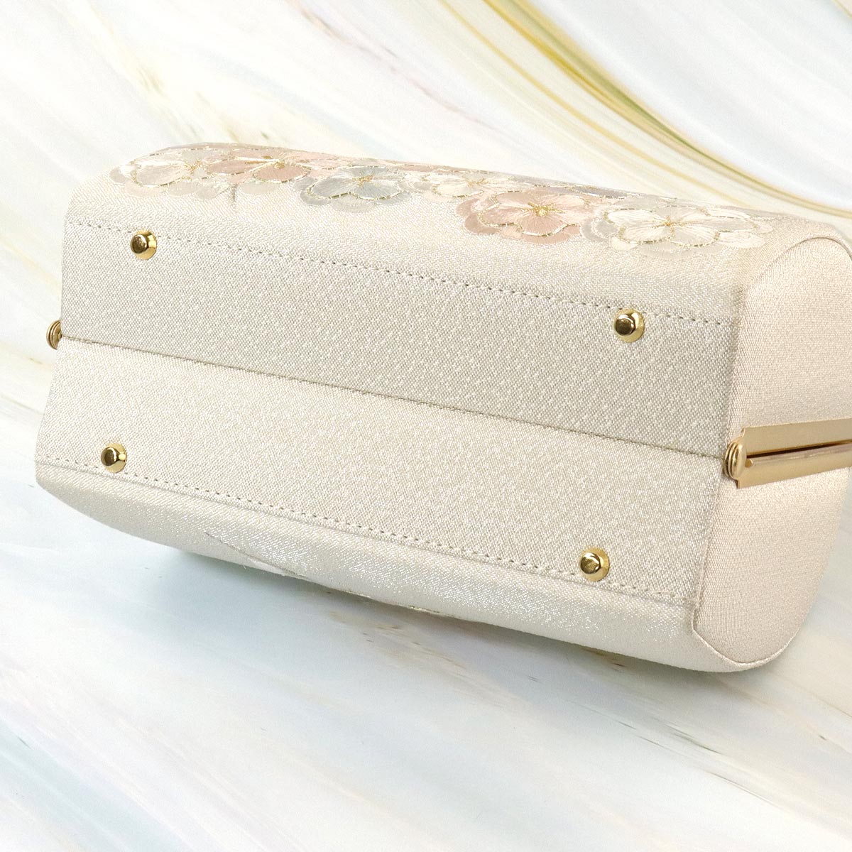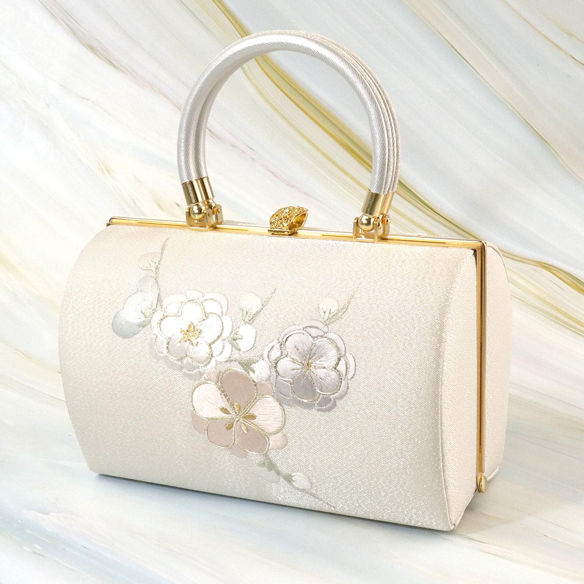 衿秀 公式 バッグ 和装 着物 ばっぐ bag 振袖 がま口 がまぐち 鈴 七宝 吉祥紋様 刺繍 白銀 帯地 フォーマル 正絹 日本製 和装小物 和小物 えりひで 襟の衿秀