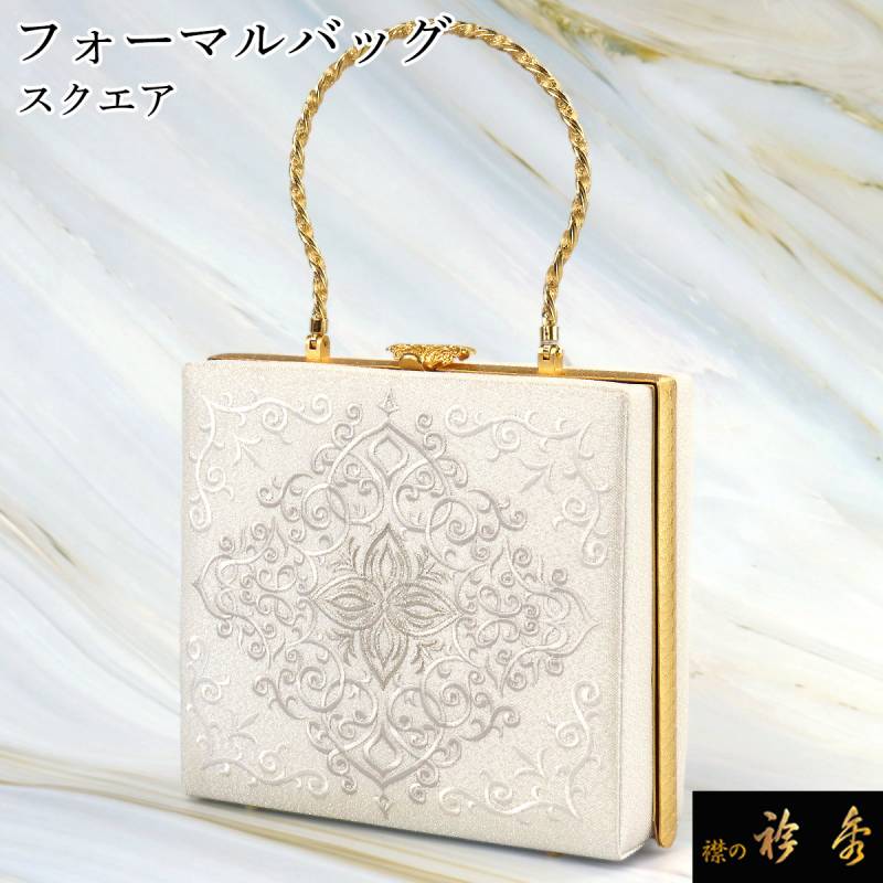 衿秀 公式 バッグ 和装 着物 ばっぐ bag フォーマル ハンドバッグ スクエア 帯地 菱唐草 シルバー 銀 日本製 和装小物 和小物 えりひで 襟の衿秀