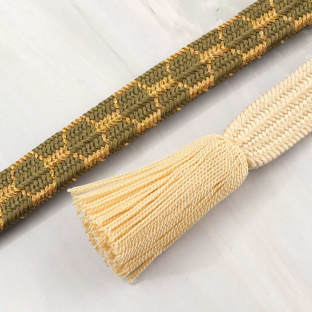 厚みのある、しっかりとした組の貝ノ口。