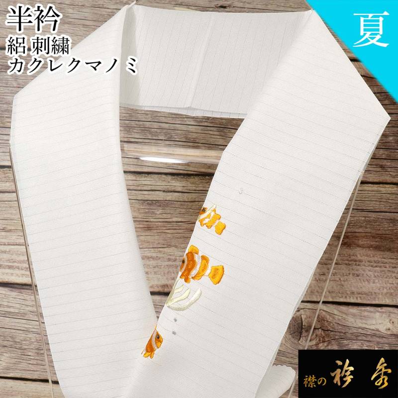 衿秀 公式 半衿 はんえり 夏 絽 刺繍 カクレクマノミ イソギンチャク ポリエステル 洗える 日本製 和装小物 和小物 えりひで 襟の衿秀