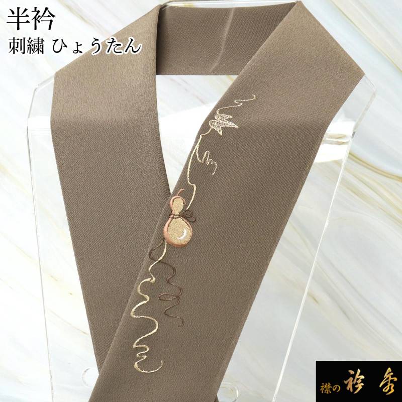 衿秀 公式 半衿 はんえり 刺繍 ひょうたん 瓢箪 胡桃色 錆利休地 洗える ポリエステル 日本製 和装小物 和小物 えりひで 襟の衿秀