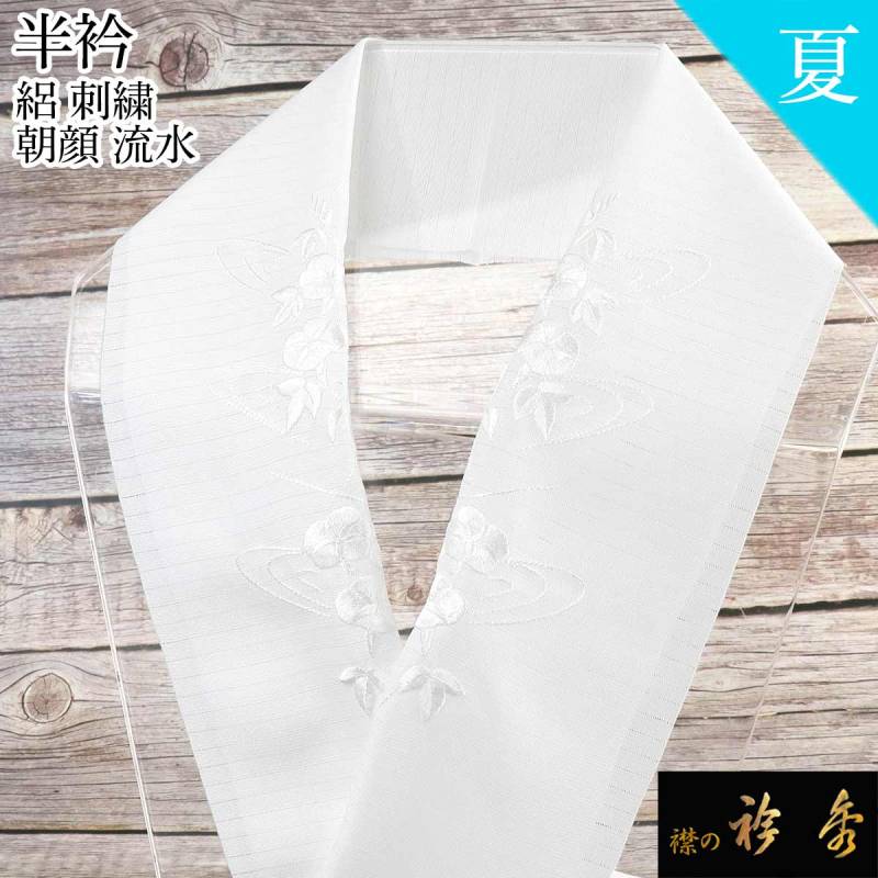 衿秀 公式 半衿 はんえり 夏 絽 刺繍 朝顔 アサガオ 白 ポリエステル 洗える 日本製 和装小物 和小物 えりひで 襟の衿秀