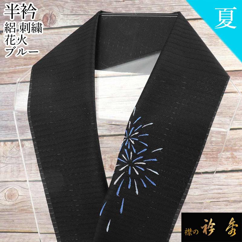衿秀 公式 半衿 はんえり 夏 絽 刺繍 花火 黒 ブルー ポリエステル 洗える 日本製 和装小物 和小物 えりひで 襟の衿秀