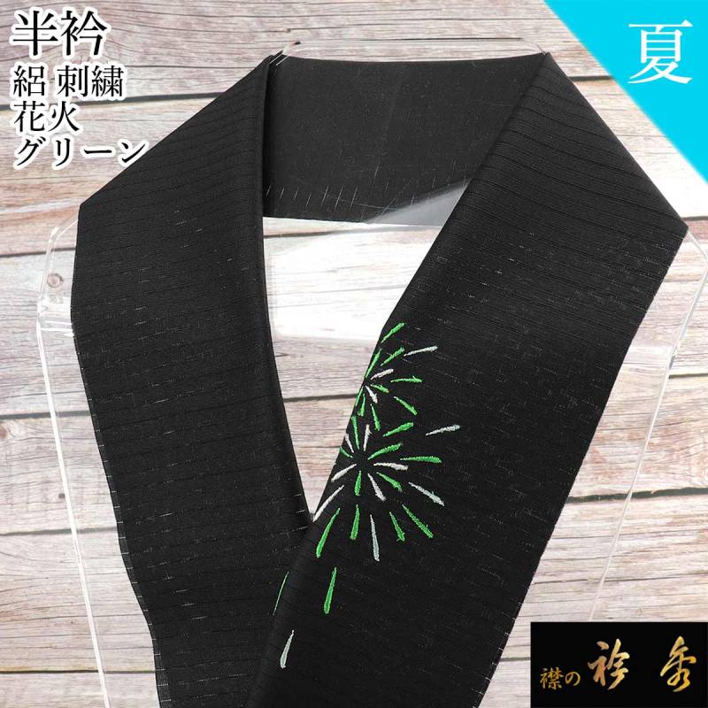 衿秀 公式 半衿 はんえり 夏 絽 刺繍 花火 黒 グリーン ポリエステル 洗える 日本製 和装小物 和小物 えりひで 襟の衿秀