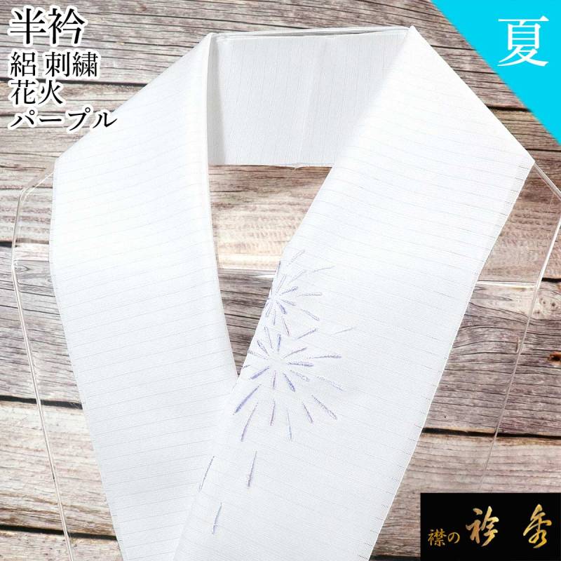 衿秀 公式 半衿 はんえり 夏 絽 刺繍 花火 白 パープル ポリエステル 洗える 日本製 和装小物 和小物 えりひで 襟の衿秀