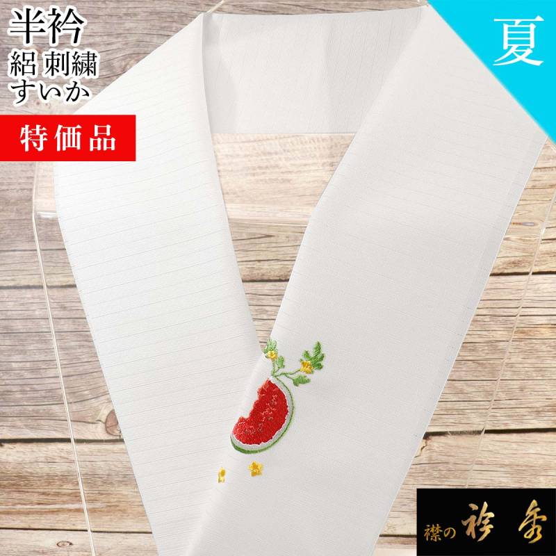 衿秀 公式 特価 半衿 はんえり 絽 夏 ワンポイント 刺繍 すいか スイカ 送料無料 日本製