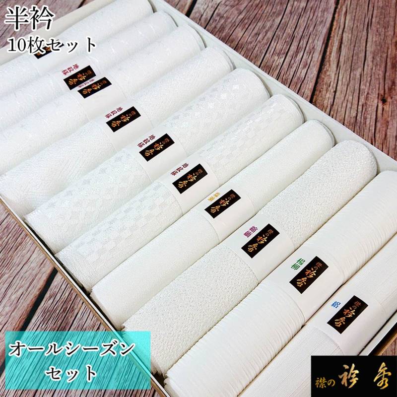 衿秀 公式 半衿 10枚セット 夏 冬 オールシーズン 贈呈 プレゼント 母の日 塩瀬 楊柳 縮緬 絽 地紋 市松 たて枠 麻の葉 洗える 日本製 襟の衿秀 tb
