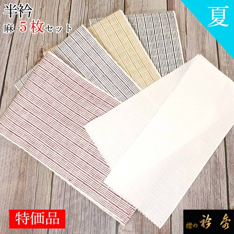 衿秀 公式 《特価品》半衿 はんえり 半襟 麻 夏 5枚セット 1000円 洗える 日本製 和装小物 和小物 えりひで 襟の衿秀