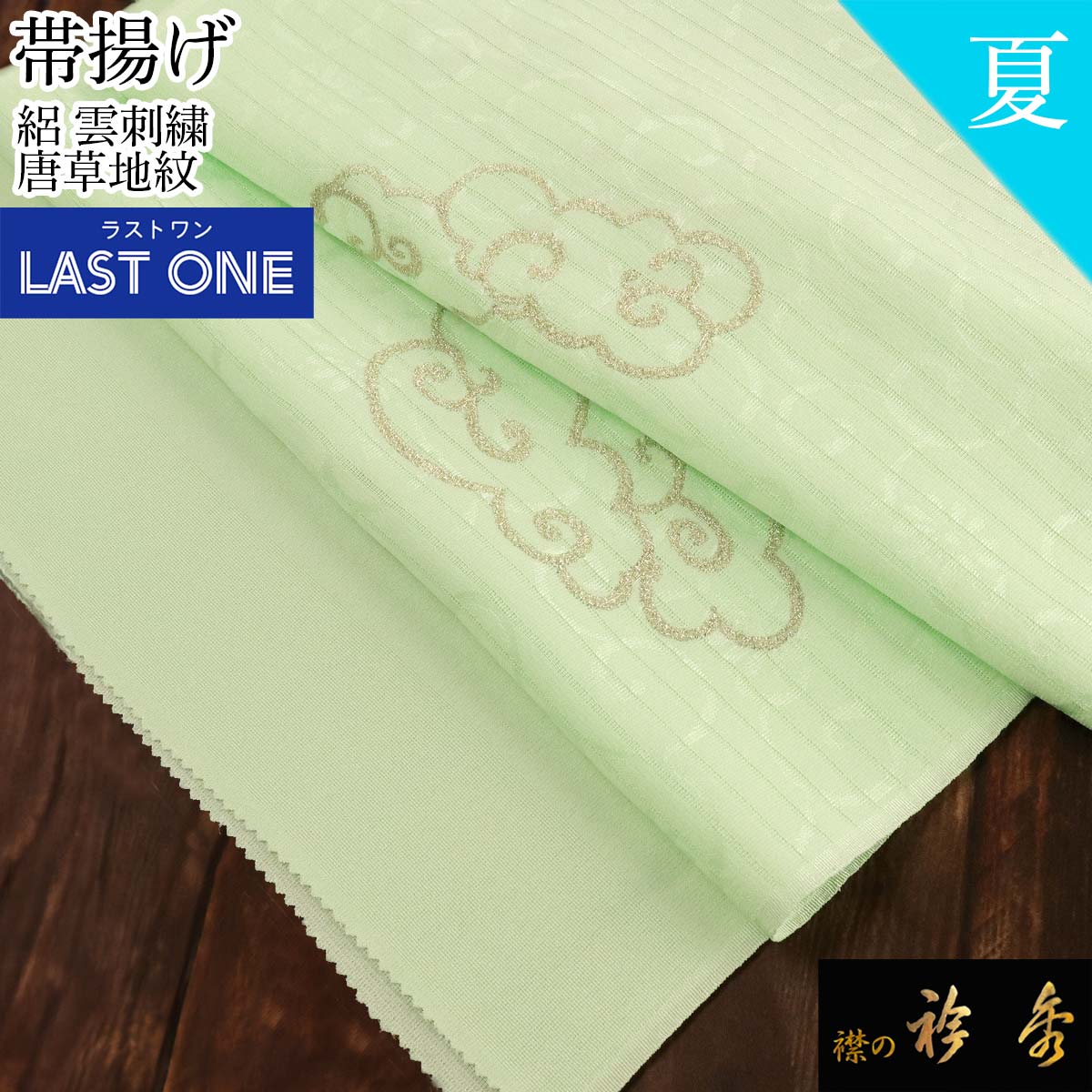 衿秀 公式 《ラストワン》帯揚 帯揚げ おびあげ 夏 絽 唐草 金彩 日本製 和装小物 和小物 えりひで 襟の衿秀 sp