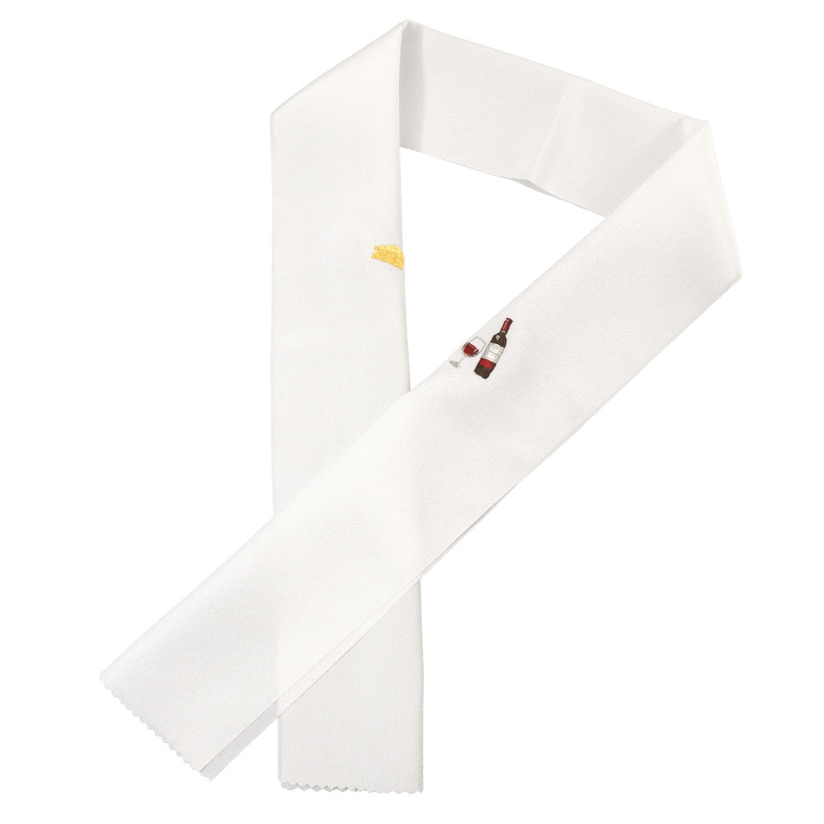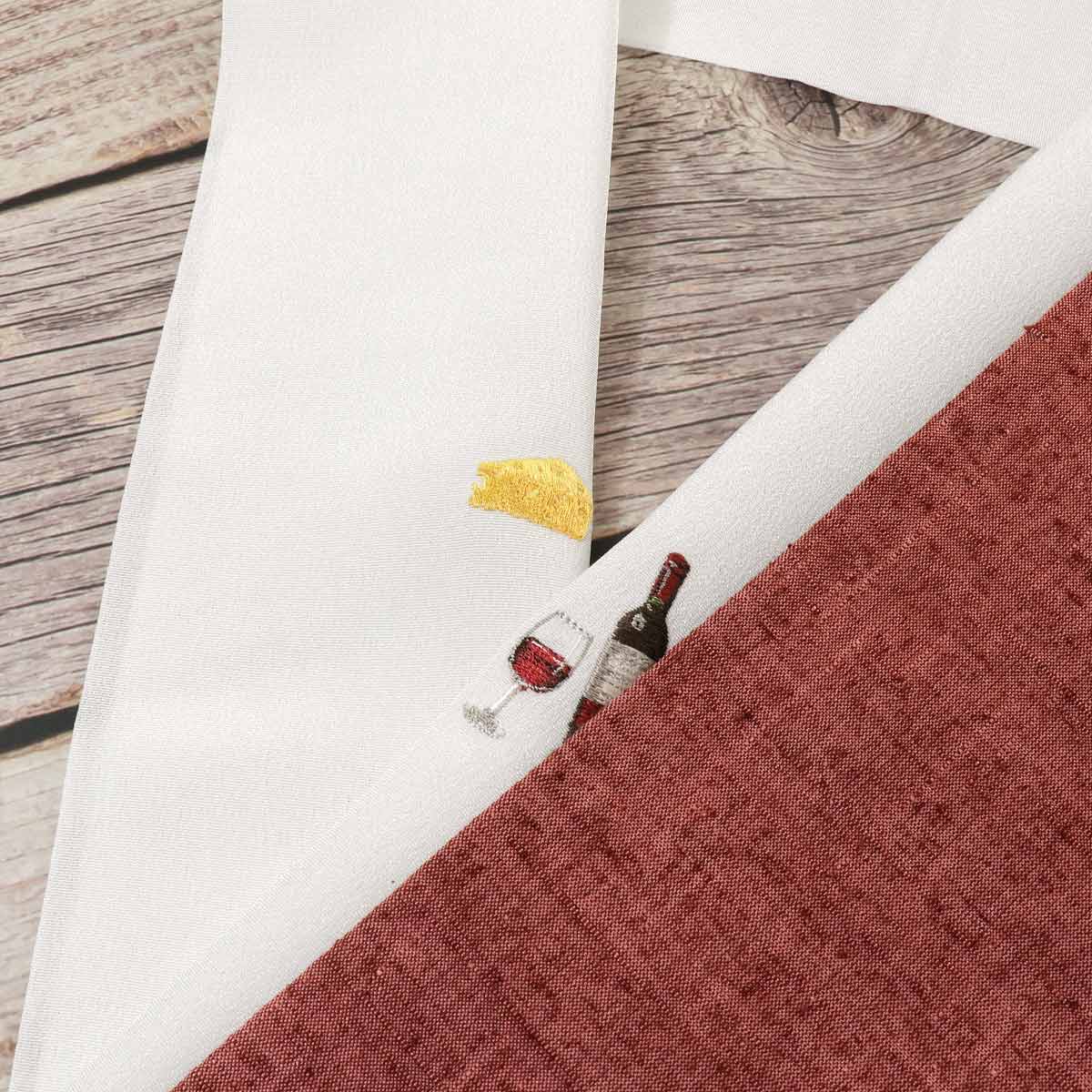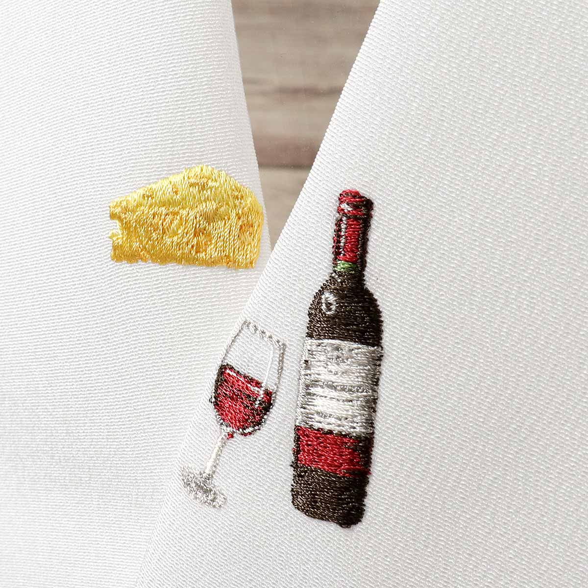 赤ワインとチーズが刺繍されています。