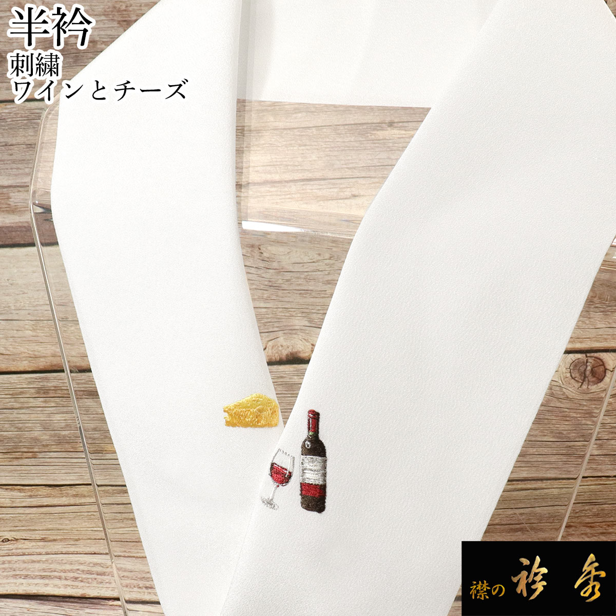 ワインとチーズ柄の刺繍半衿です。